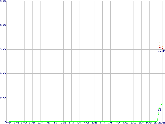 | Core i7-920 (2.66GHz)の価格推移 | | | (2007年9月14日~2008年11月28日) |