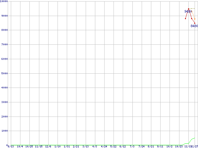 | SP032GBSSD650S25 (32GB,MLC)の価格推移 | | | (2007年9月13日~2008年11月27日) |