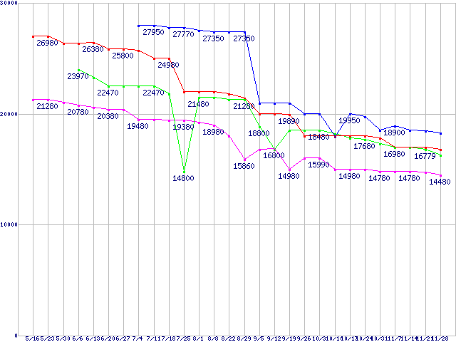 Socket AM2 (HyperTransport 3.0,Quad Core)の最安値推移