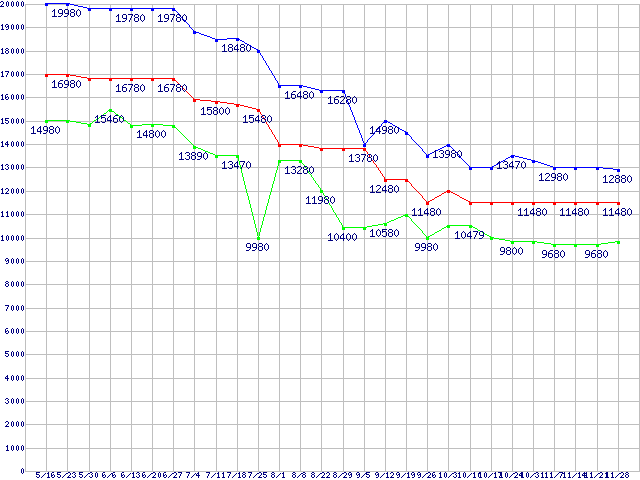 | Socket AM2 (HyperTransport 3.0,Triple Core,TDP 95W)の最安値推移 | | | (2008年5月16日~2008年11月28日) |