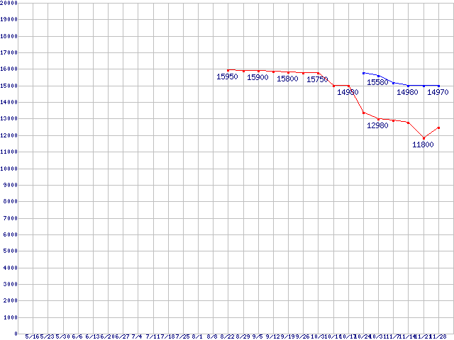 LGA775 (FSB 1066MHz,Dual Core,TDP 65W)の最安値推移