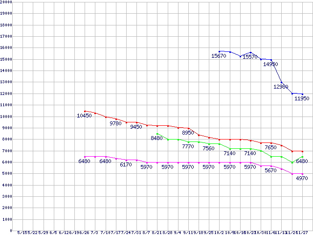 WD Scorpio Blue (5400rpm,3Gb/s,2.5インチ)の最安値推移