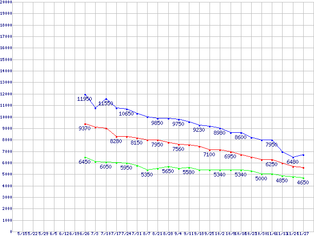 Travelstar 5K320 (5400rpm,3Gb/s,2.5インチ)の最安値推移