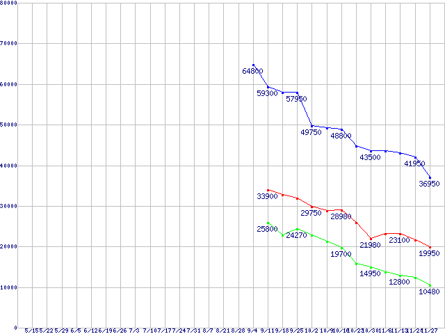 | PATRIOT Extreme Performance Warp Solid State Disk (SSD,3Gb/s,2.5インチ)の最安値推移 | | | (2008年5月15日~2008年11月27日) |