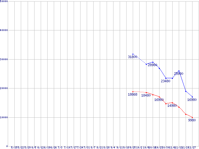 Deskstar 7K1000.B (7200rpm,3Gb/s)の最安値推移