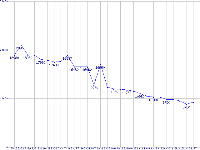 Spinpoint F1 (7200rpm,3Gb/s)の最安値推移