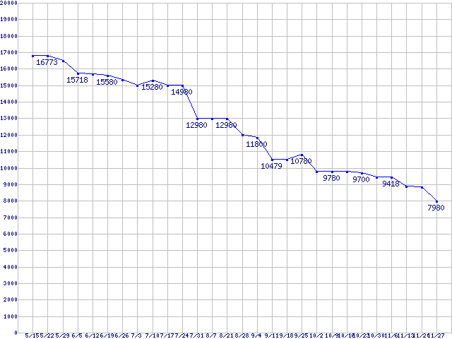 Spinpoint F1 (7200rpm,3Gb/s)の最安値推移