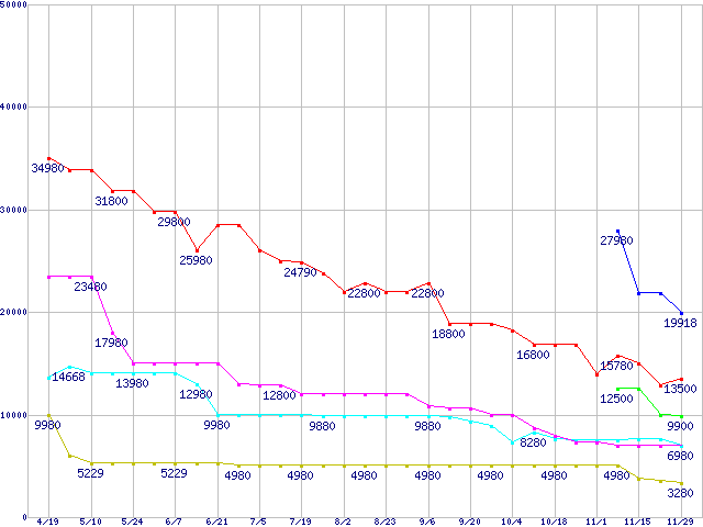 メモリ主要製品の最安値推移