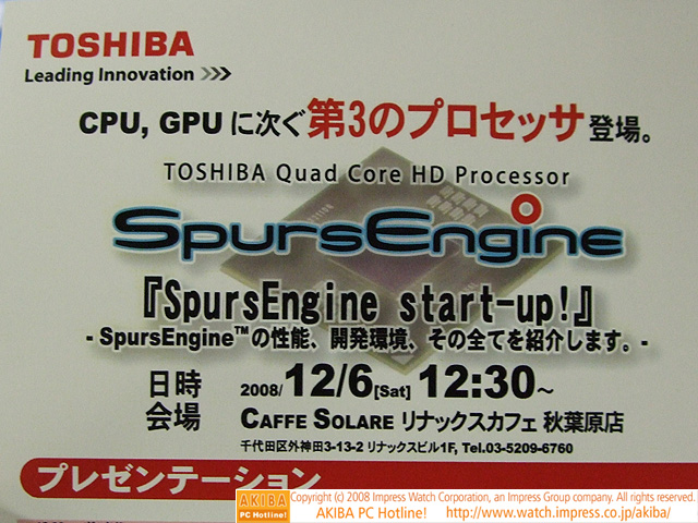 SpursEngineのイベントを東芝が来週実施、SDKの解説やソフト各社のアピールも