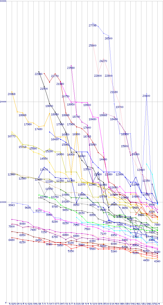 | HDD/SSD主要製品(最安値1万円未満)の最安値推移 | | | (2008年5月22日~2008年12月4日) |