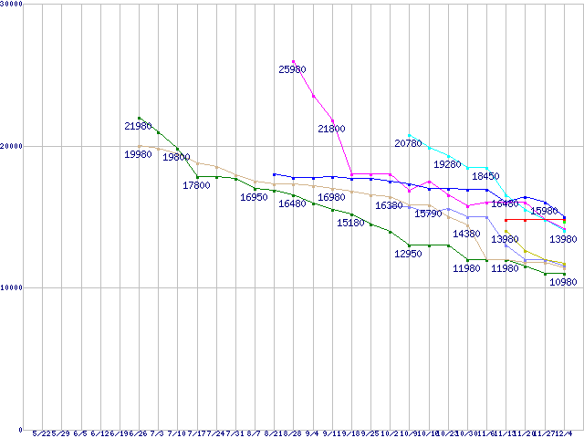 HDD/SSD主要製品(最安値1万5千円~2万円未満)の最安値推移