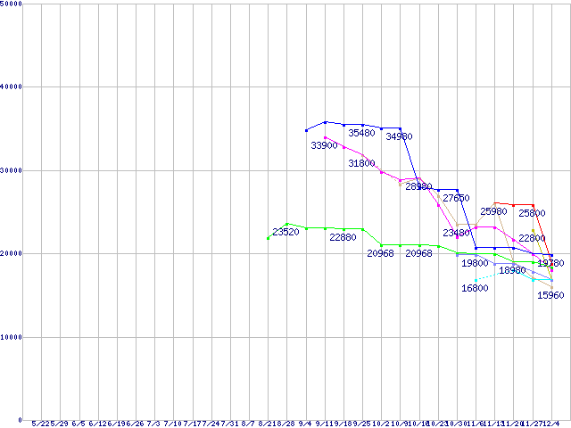 HDD/SSD主要製品(最安値2万円以上)の最安値推移