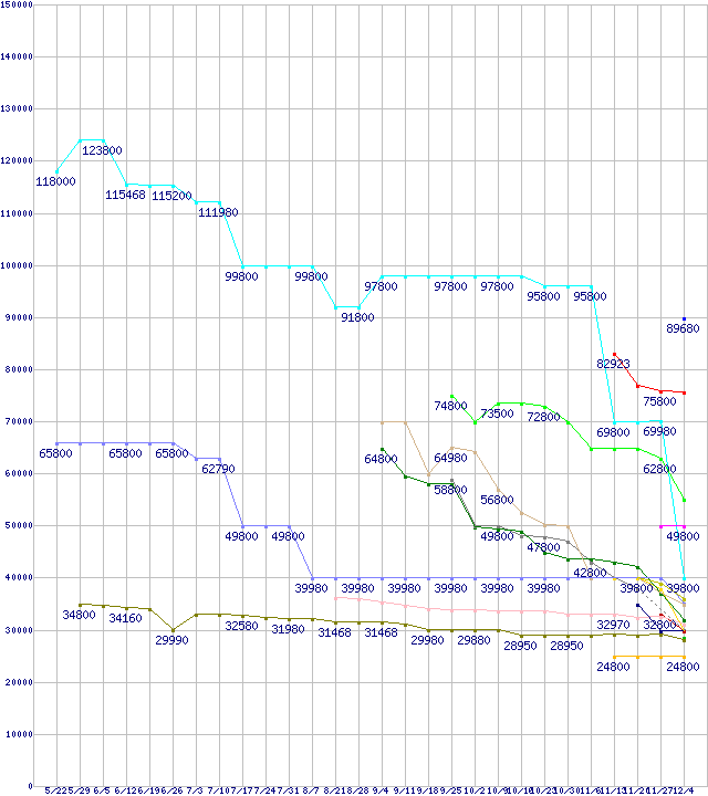 | HDD/SSD主要製品(最安値2万円以上)の最安値推移 | | | (2008年5月22日~2008年12月4日) |