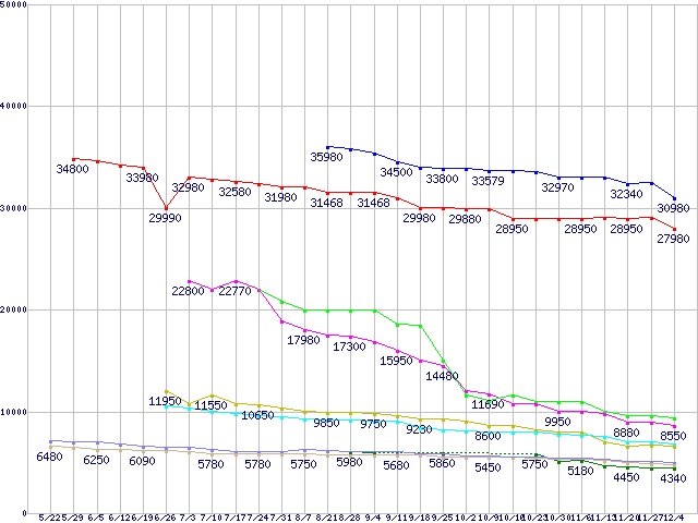 HDD 500~600GB未満の最安値推移
