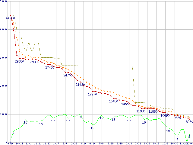 | WD10EACS (1TB,16MB)の価格推移 | | | (2007年9月20日~2008年12月4日) |
