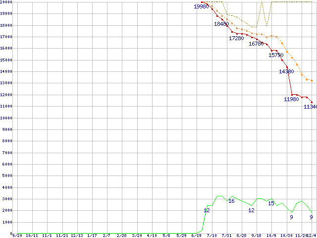 | WD1001FALS (1TB,32MB)の価格推移 | | | (2007年9月20日~2008年12月4日) |