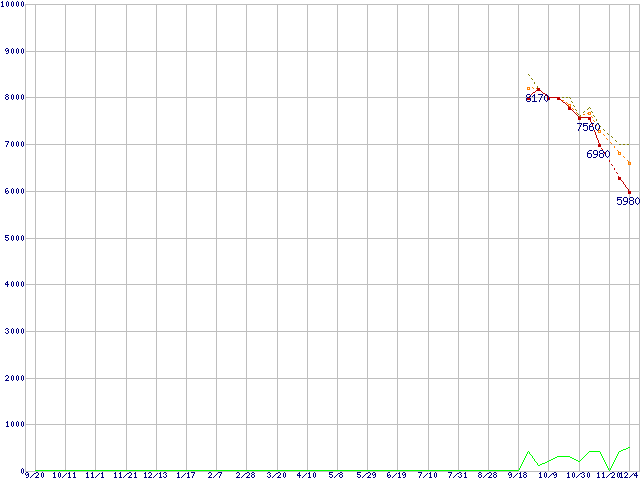 | WD5001AALS (500GB,32MB)の価格推移 | | | (2007年9月20日~2008年12月4日) |