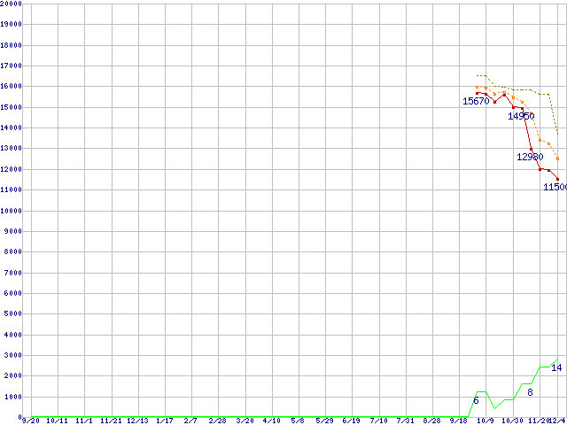 | WD5000BEVT (500GB,8MB)の価格推移 | | | (2007年9月20日~2008年12月4日) |