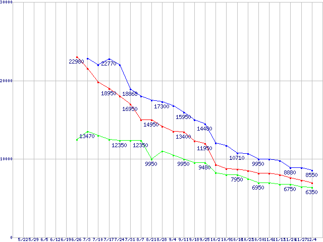 Deskstar P7K500 (7200rpm,3Gb/s)の最安値推移