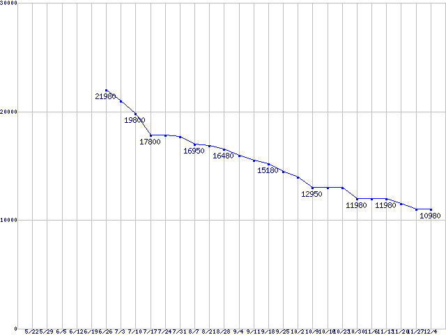 Spinpoint M6 (5400rpm,1.5Gb/s,2.5インチ)の最安値推移