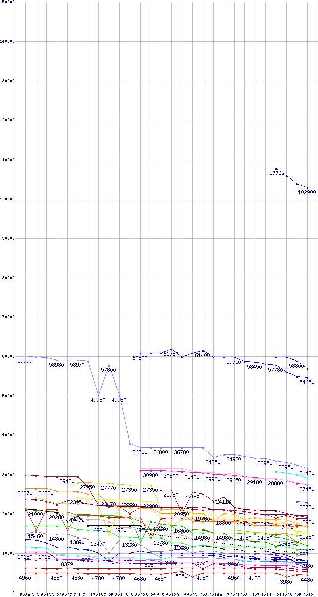 | CPU主要製品の最安値推移 | | | (2008年5月30日~2008年12月12日) |