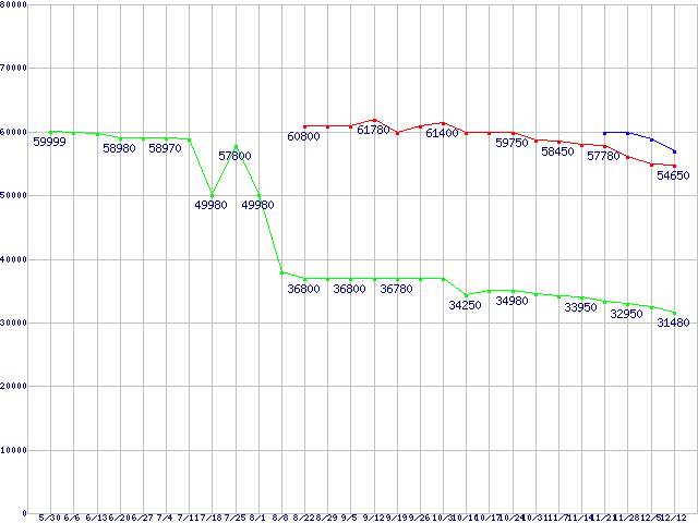 CPU主要製品(最安値3万円~6万円未満)の最安値推移