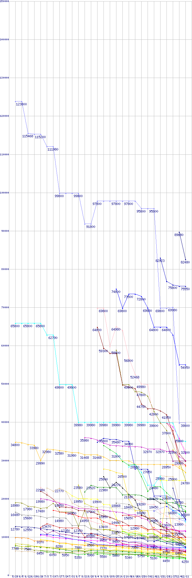 ※製品名をクリックすると個別のグラフを表示します ※点線部は販売店が確認できなかった、または調査データがないことを示します |