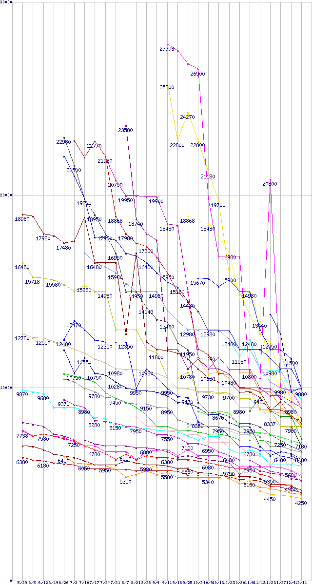 ※製品名をクリックすると個別のグラフを表示します ※点線部は販売店が確認できなかった、または調査データがないことを示します |