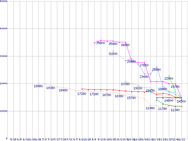 HDD/SSD主要製品(最安値1万5千円~2万円未満)の最安値推移