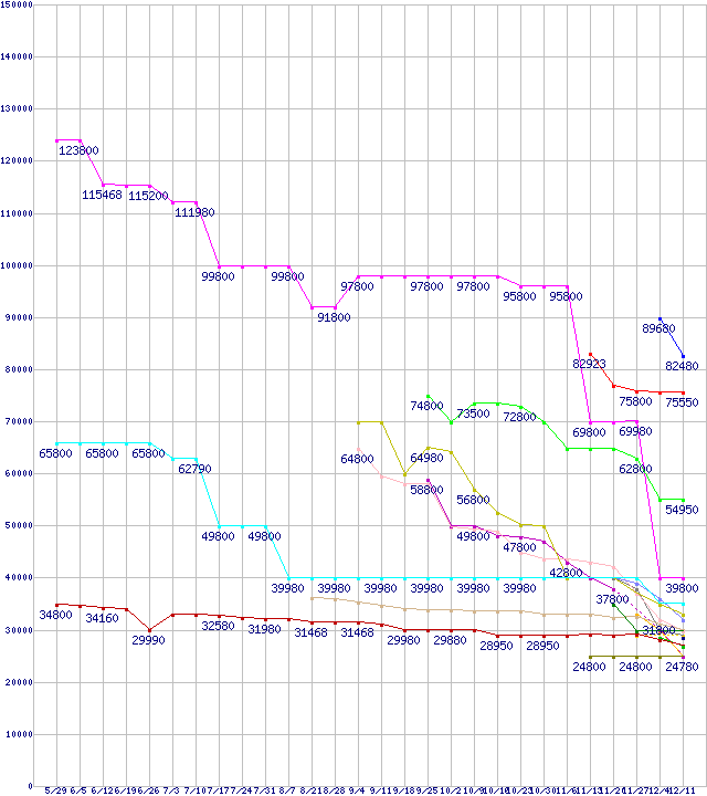 | HDD/SSD主要製品(最安値2万円以上)の最安値推移 | | | (2008年5月29日~2008年12月11日) |