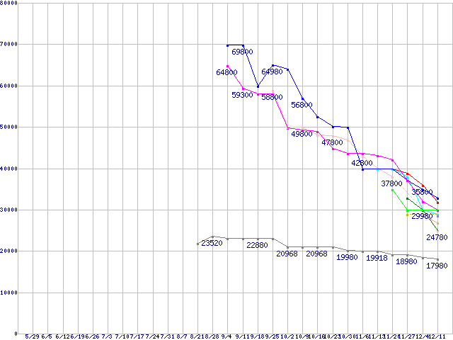 | HDD 100~160GB未満の最安値推移 | | | (2008年5月29日~2008年12月11日) |