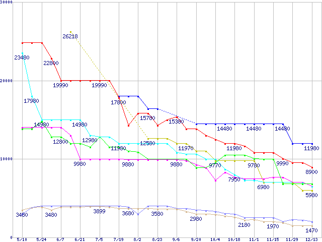 ※点線部は販売店が確認できなかった、または調査データがないことを示します