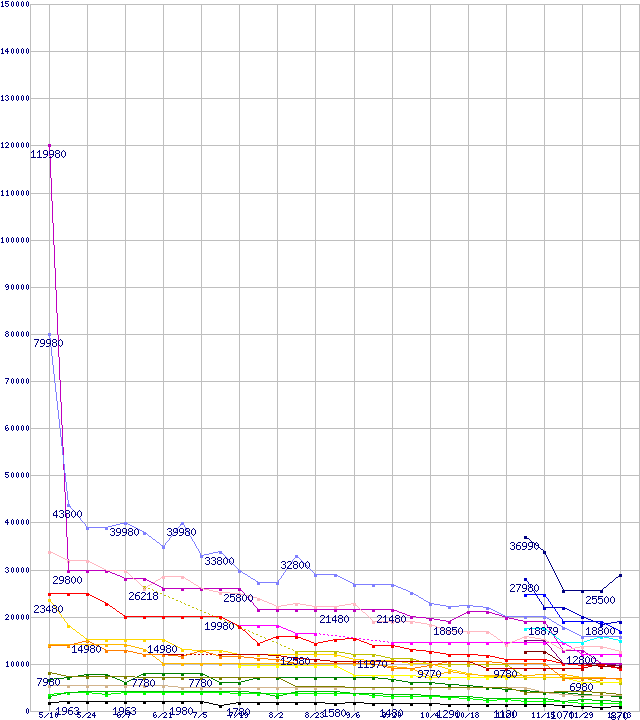 ※点線部は販売店が確認できなかった、または調査データがないことを示します