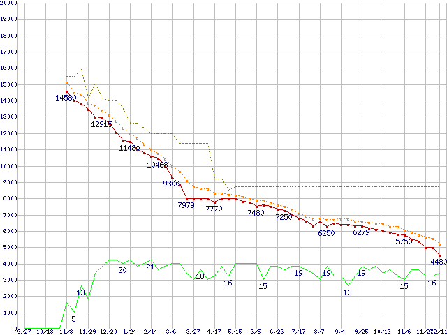 | HDP725050GLA360 (500GB,16MB)の価格推移 | | | (2007年9月27日~2008年12月11日) |