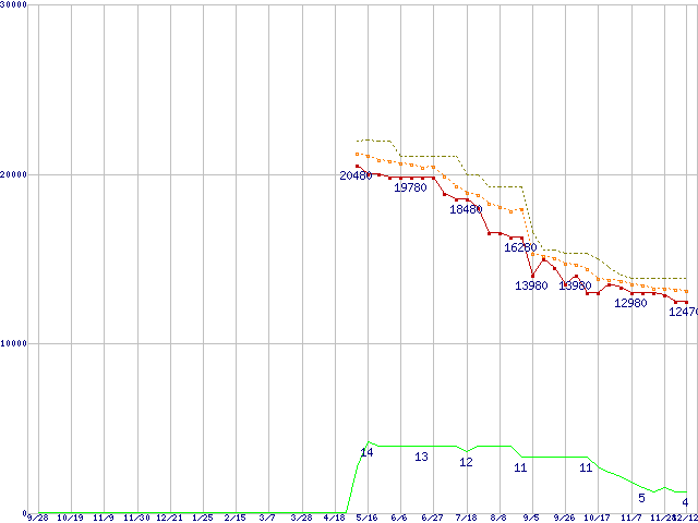 | Phenom X3 8750 (2.4GHz,L2 512KB×3,L3 2MB)の価格推移 | | | (2007年9月28日~2008年12月12日) |