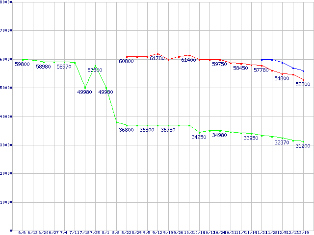 CPU主要製品(最安値3万円~6万円未満)の最安値推移