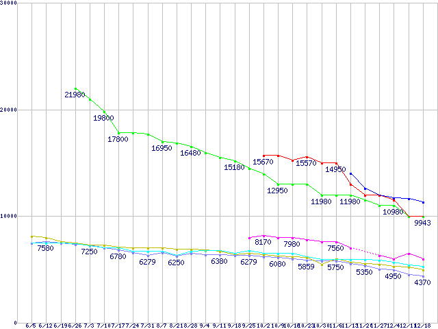 HDD 600~750GB未満の最安値推移