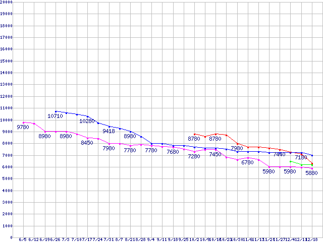 HDD 600~750GB未満の最安値推移