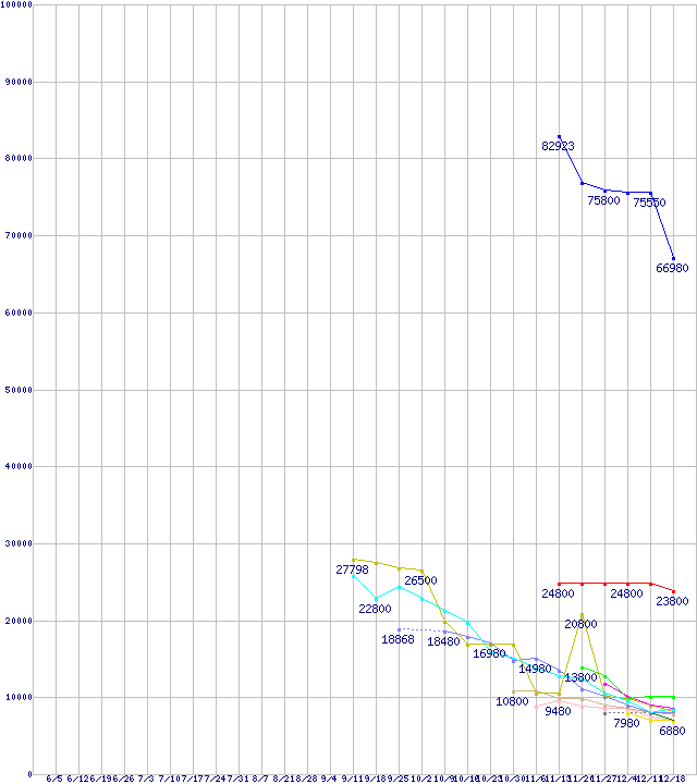| HDD/SSD 30GB~60GB未満の最安値推移 | | | (2008年6月5日~2008年12月18日) |