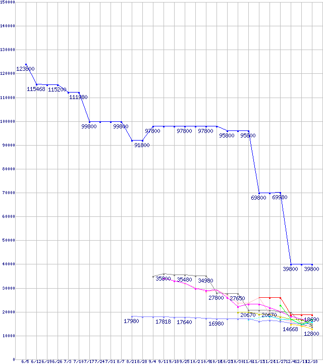 | HDD/SSD 60GB~80GB未満の最安値推移 | | | (2008年6月5日~2008年12月18日) |