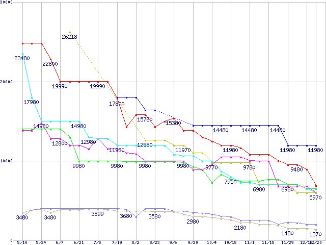 ※点線部は販売店が確認できなかった、または調査データがないことを示します