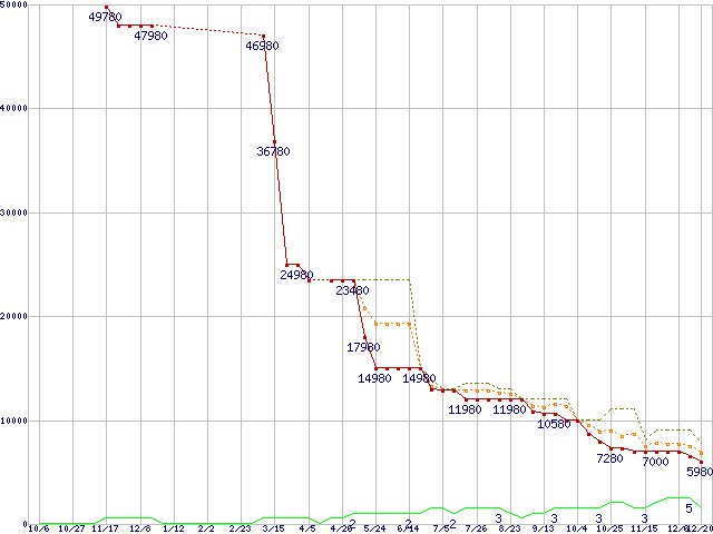 メモリ主要製品の最安値推移