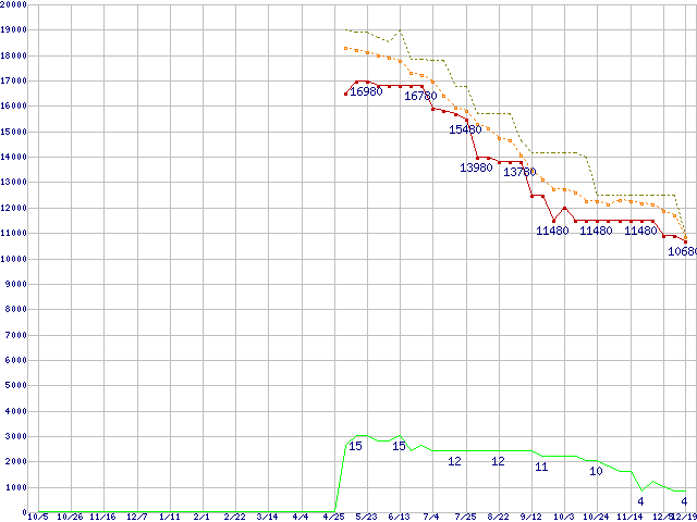| Phenom X3 8650 (2.3GHz,L2 512KB×3,L3 2MB)の価格推移 | | | (2007年10月5日~2008年12月19日) |