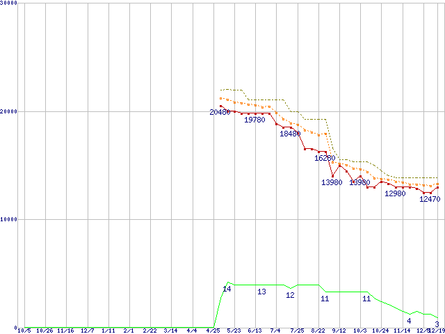 | Phenom X3 8750 (2.4GHz,L2 512KB×3,L3 2MB)の価格推移 | | | (2007年10月5日~2008年12月19日) |