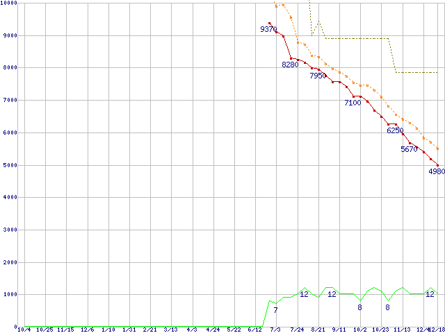 | HTS543225L9A300 (250GB,8MB)の価格推移 | | | (2007年10月4日~2008年12月18日) |