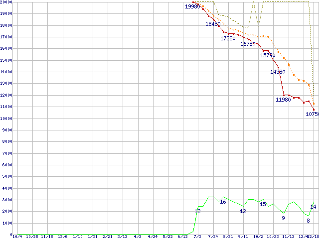 | WD1001FALS (1TB,32MB)の価格推移 | | | (2007年10月4日~2008年12月18日) |