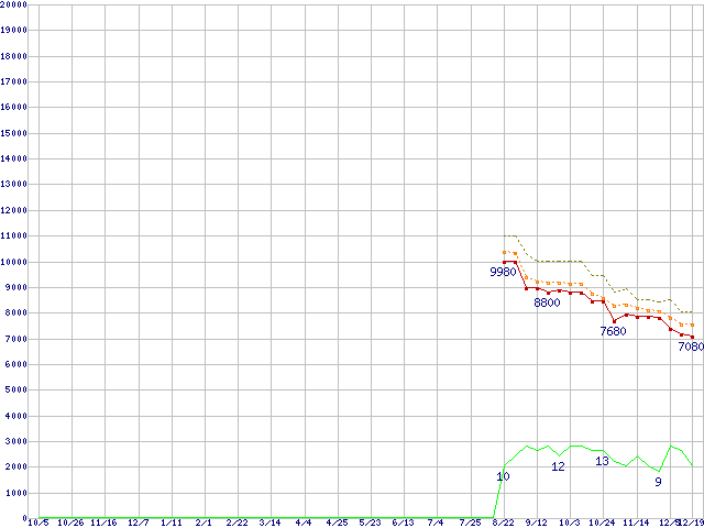 | Athlon X2 5400 Black Edition (2.8GHz,L2 512KB×2)の価格推移 | | | (2007年10月5日~2008年12月19日) |