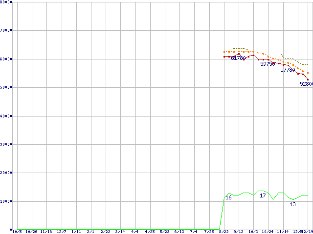| Core 2 Quad Q9650 (3.00GHz,L2 6MB×2)の価格推移 | | | (2007年10月5日~2008年12月19日) |
