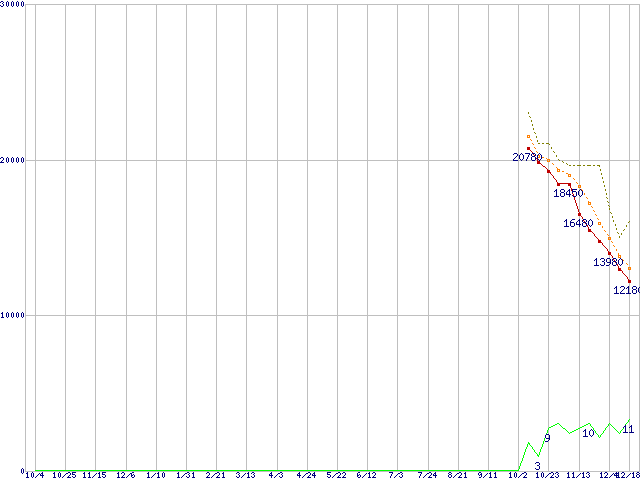 | ST31500341AS (1.5TB,32MB)の価格推移 | | | (2007年10月4日~2008年12月18日) |