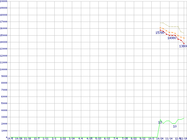 | Core 2 Duo E7400 (2.80GHz,L2 3MB)の価格推移 | | | (2007年10月5日~2008年12月19日) |